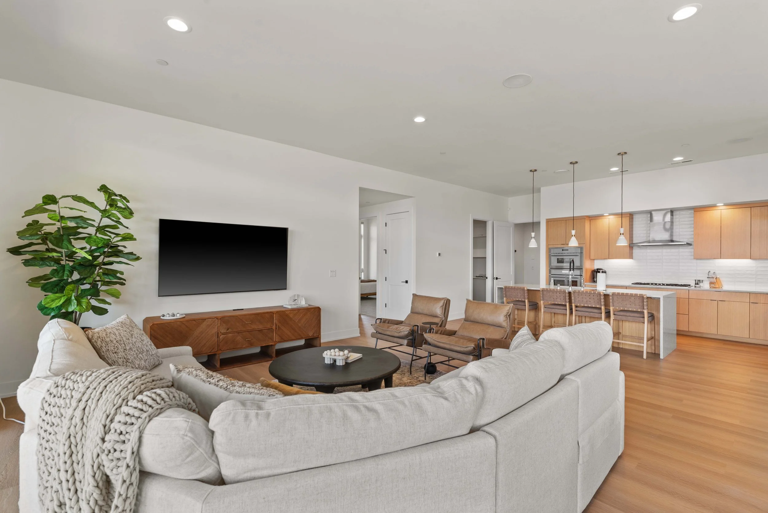 Our largest single-level home, the Columbia features 3 bedrooms, a spacious den, and 4.5 baths. The expansive great room showcases 10’6” ceilings and floor-to-ceiling windows, flowing seamlessly into a chef’s kitchen with a grand island, custom cabinetry, and pantry. The primary suite offers a spa-inspired bath and generous walk-in closet, while the den provides scenic views perfect for work or relaxation. An oversized 1,091 sq. ft. garage easily accommodates a boat, golf cart, and all your recreational toys.