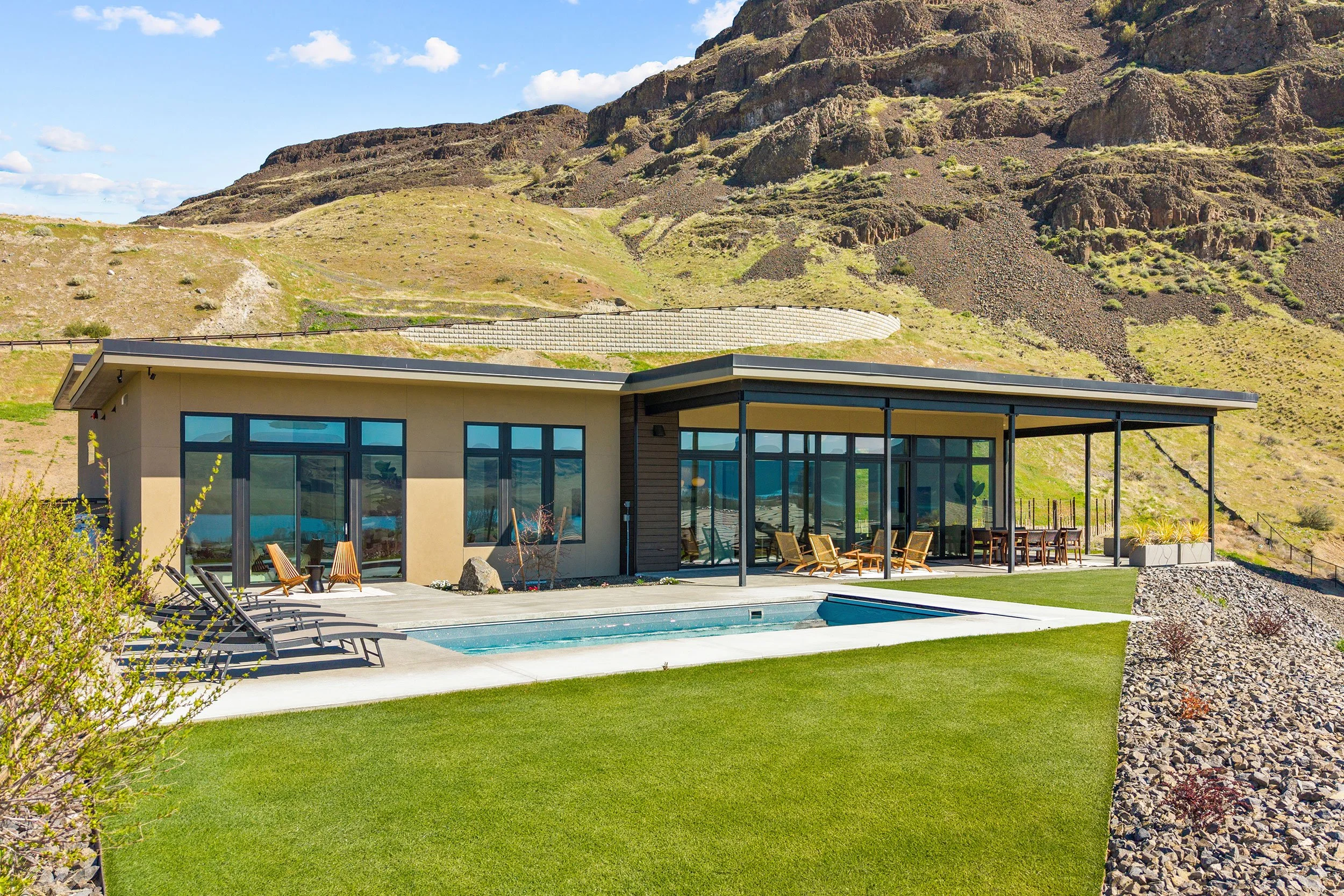 Experience modern luxury at Crescent Ridge in the Solera I floorplan, set on a half-acre lot with sweeping Columbia River and basalt cliff views framed by floor-to-ceiling windows.